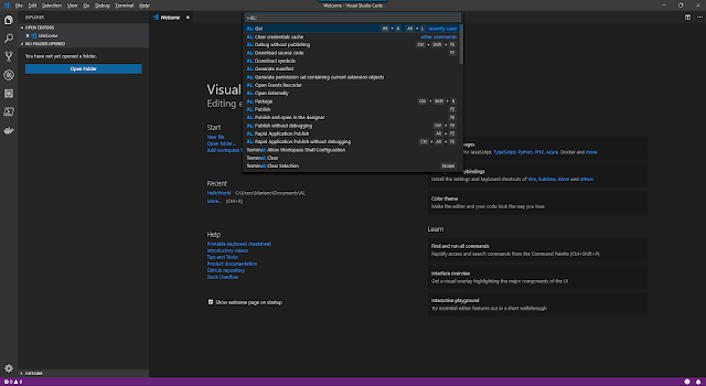 1. Press Ctrl+Shift+P on your keyboard to open the VS Code Command Palette (Alternatively, you can choose View | Command Palette from the menu). Type AL:Go! to locate the option to create an AL project.