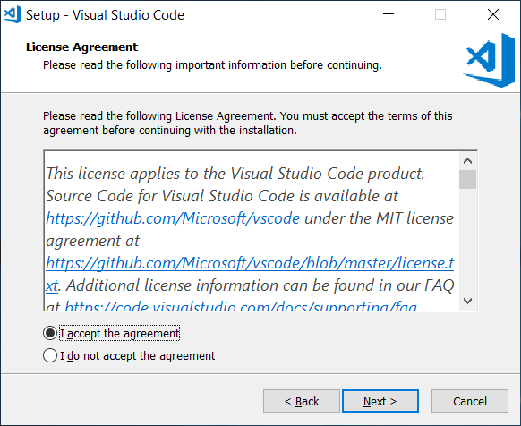 4. Acknowledge the license agreement and click on Next to continue. You will then be asked to enter a new installation folder or accept the default - personally, I find that the defaults work best.