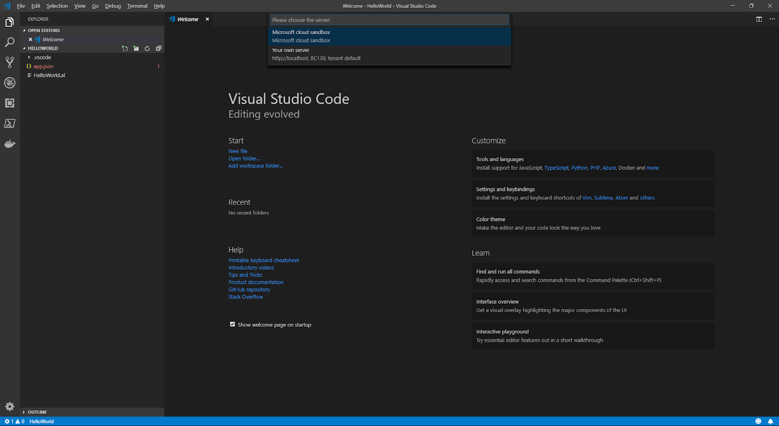 The "Hello World" project serves to test the entire installation up to this point and is the first foray into the world of AL extensions.