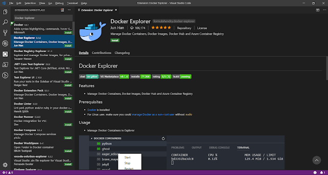 5. Install Docker Explorer by Jun Han. With Docker Explorer you can manage Docker containers, Docker images, Docker Hub and Azure Container Registry right from VS Code.