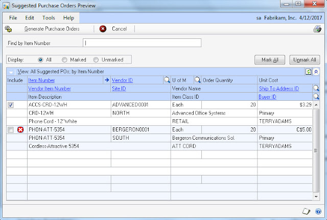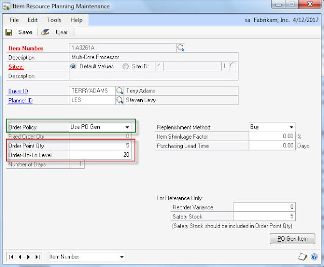 Key to determining how PO Gen plans suggested purchase orders are the settings in Item Resource Planning and Site Resource Planning.