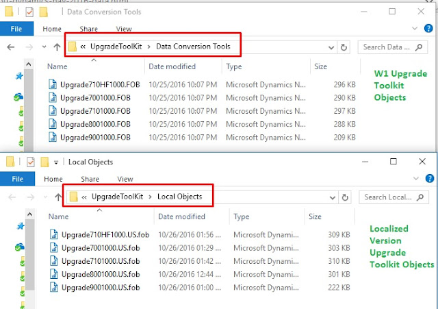 Upgrade Toolkit objects are placed in the Product DVD. In Product DVD Folder "UpgradeToolKit" will contain objects for worldwide version (W1) and Localized Objects (as per product DVD), as shown below.