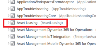 All the asset leasing objects are under a separate model in the application explorer