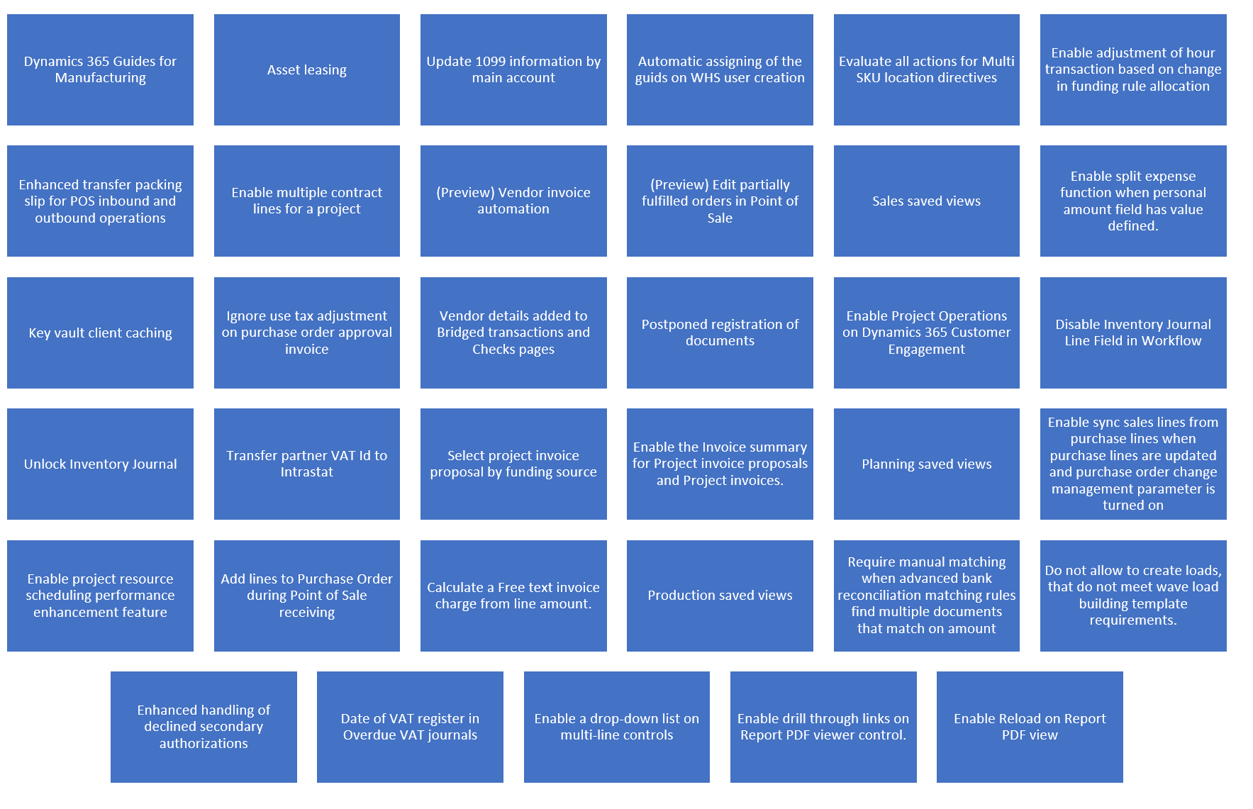 Dynamics 365 Guides for Manufacturing --> This feature enables you to deliver mixed-reality, step-by-step instructions for production processes using Dynamics 365 Guides.
