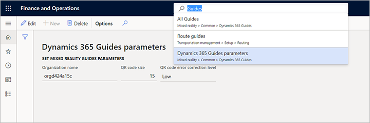 To configure how Guides appear on the shop floor, go to Mixed Reality > Dynamics 365 Guides > Configure Guides integration.