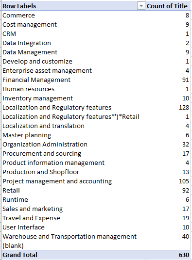 We can see most of the fixes are in Localization, PMA, Retail, Financial management and Warehouse and Transportation management modules.