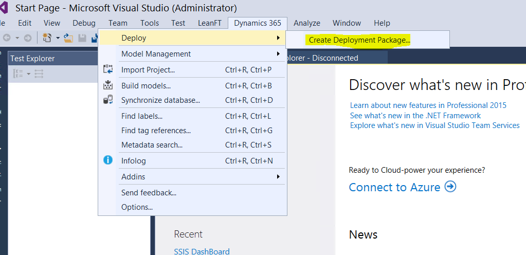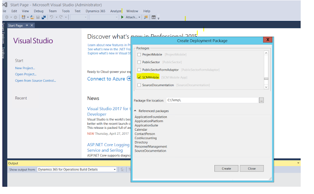 Once the bundle installation is successful, next step is to go to Visual Studio and create a deployable package as shown below: