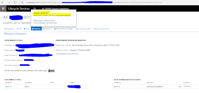 Now, you should be able to go to your environment where you want to apply the deployable package and then click on Apply Updates from maintain environment and select the deployable package and start deploying.