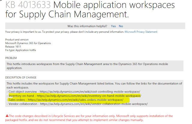 Most of the above workspaces are linked to a Hotfix which can be downloaded from LCS