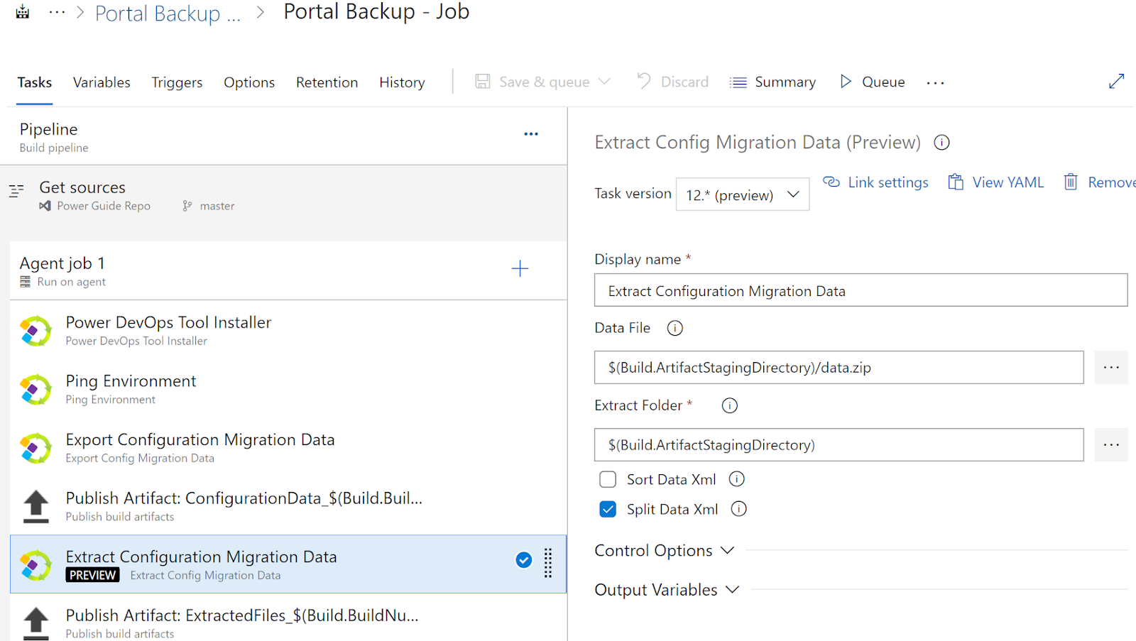 - Keep the Portal Backup CI Pipeline separate from your actual Build CI pipeline.