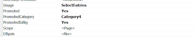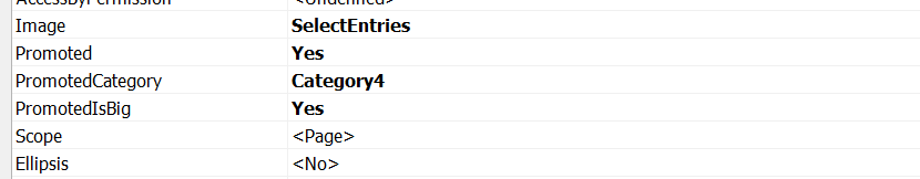 Now we are almost there, just move back to the page designer and open the properties of the page. In the PromotedActionCategoriesML add the Mark at the 4th option (Since we added our new buttons to Category4)