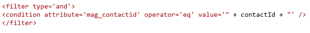 • Filter criteria this does not contain the whole fetchXML definition. Instead it is only the filtering criteria.