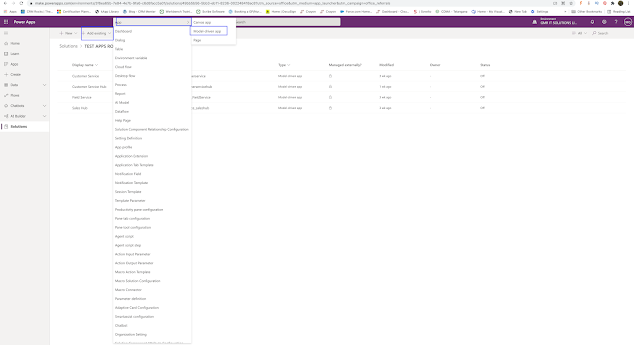 2. Click on add existing and select "App" then select the " Model Driven App" see below image...