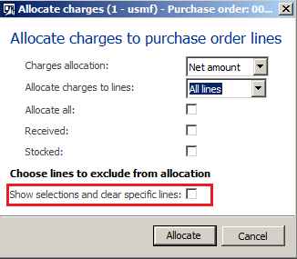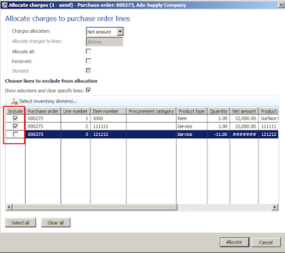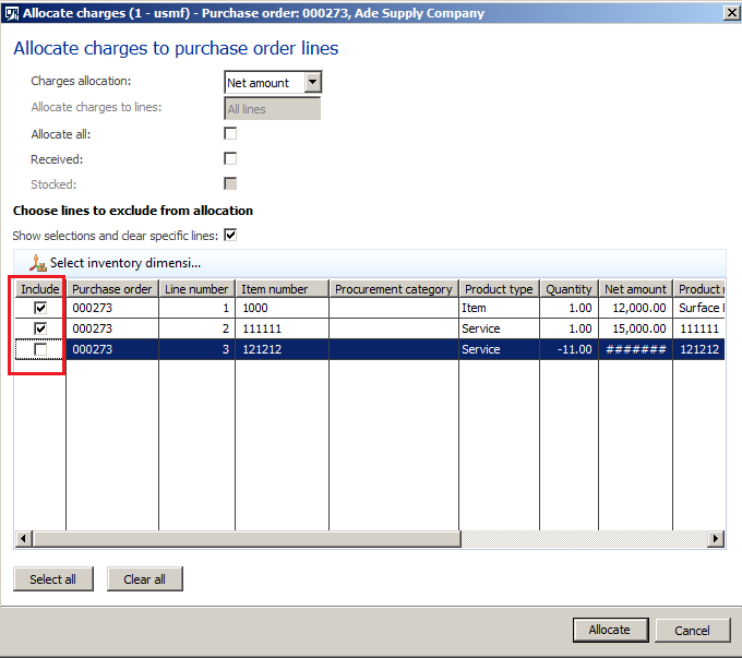 e. Clear the Include check box to exclude the lines from allocation of charges.