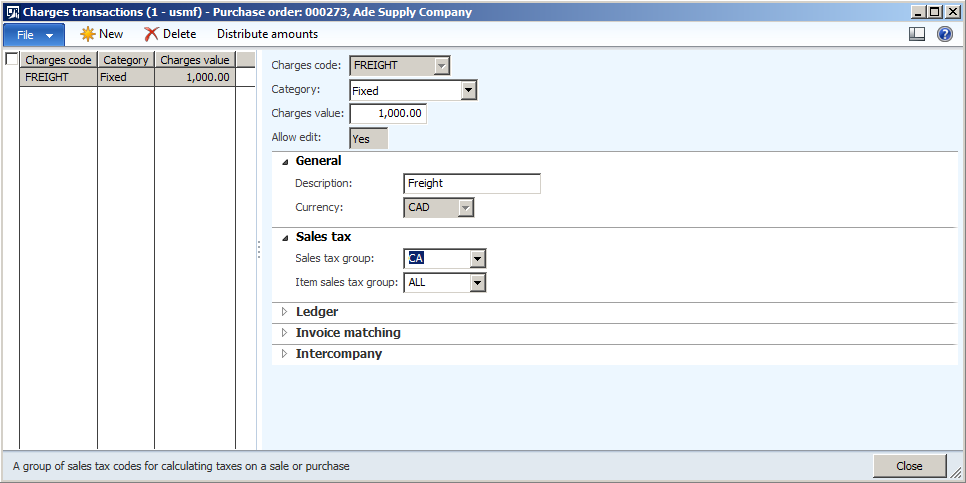 g. Once the charges have been allocated, go to purchase order --> on the action pane, on the purchase tab, in the charges group, click on Maintain charges.