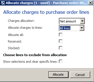 1. It is used to allocate charges to purchase order lines by selecting various parameter in the Allocate charges form.