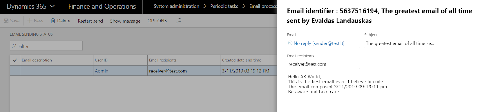 Often we need to send emails during a process in Dynamics 365 for Finance and Operations. That's quite a standard requirement which often makes you look up some examples of your own or web.