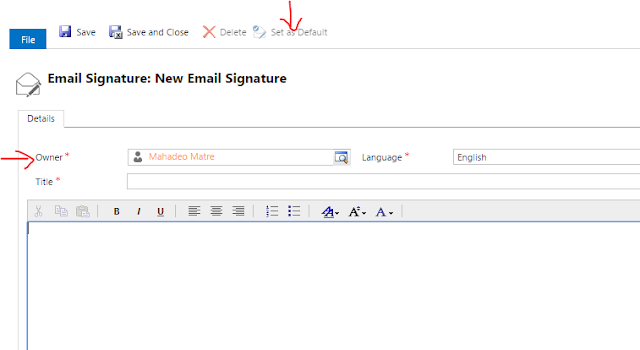 - If there are multiple signature for users and don’t want to use default signature for email, then use “Insert Signature” button shown in Email rich text box ribbon.