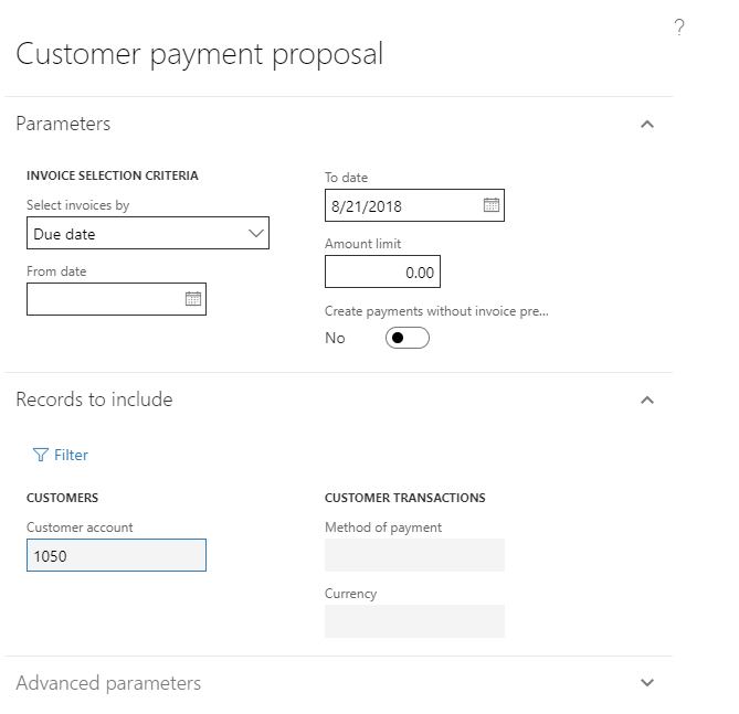 We will also set PaymProposalType and ToDate parameters.