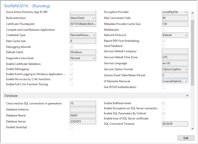 Nav Service Instance (named TestNAV2016) with Credential Type NavUserPassword was configured and runned for restored database (find more details how it was done here).