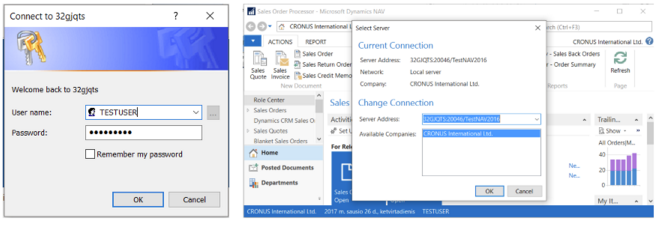 Run NAV Windows Client and enter User name and Password and access database with first user TESTUSER.