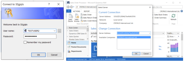Run NAV Windows Client and enter new User name and Password and access database with second user TESTUSER2.