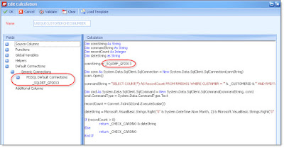 In the Edit Calculation window, expand Default Connections -> Generic -> MSSQL Default to find your connection string variable.
