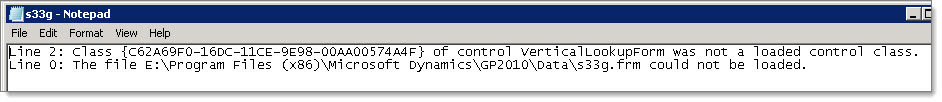 "Class {C62A69F0-.......} of control VerticalLookupForm was not a loaded control class."