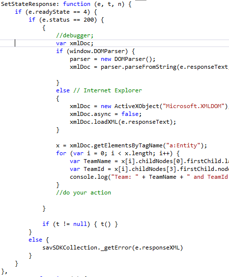 In given Solution you will find a webresource named “sav_/scripts/jswr.js” that have function “GetTeam” Which you can use to call this action. In result “Team Name” and “TeamId” is displaying in browser console. You can add your required code there.