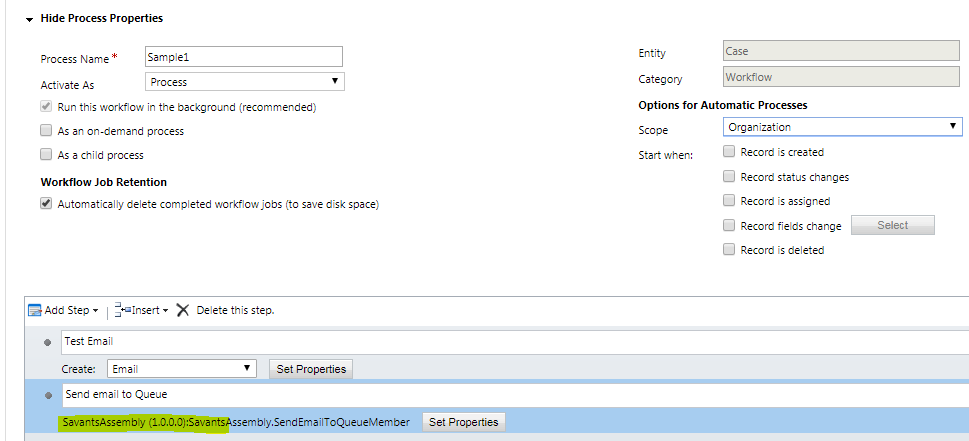 You need to provide value in Email and Queue lookup. You can use OOB workflow to create email and then use this custom workflow to send email to all queue member. In this custom workflow we are retrieving all queue members and adding to email “TO” list then custom workflow will send this email via code.