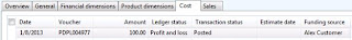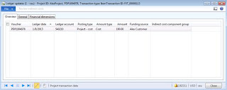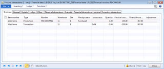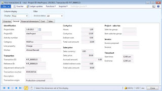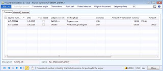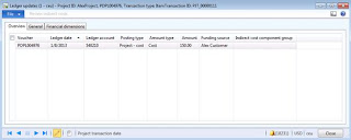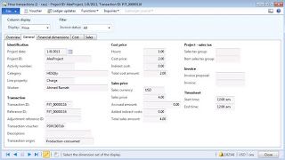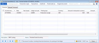 Costing Costing amount 367$ reflects the actual cost of project production order which includes material consumption and labor consumption *Inventory transactions Inventory transactions related to Car frame (AlexFrame) will be displayed on Voucher transactions screen for costing. This includes original receipt inventory transaction and auto loss/profit issue inventory transaction *Voucher transactions Please note that the system recorded 0 (Zero) voucher transaction in order to account for product receipt after the product was consumed to the project and subsequent financial activity will happen in project accounting module |