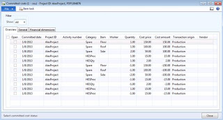 At this point you can review Project committed costs related to consumed material and labor. Please note that all committed costs transactions are closed. After reporting project production order as finished and ending Process job the system also reversed and closed committed cost transaction for Process job