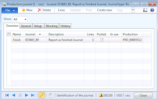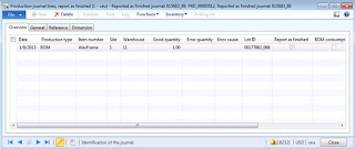 As the result the following message will be displayed informing that Report as finished journal has been posted for the receipt of finished goods into inventory