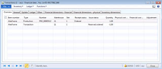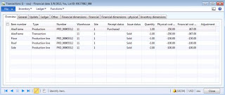 At this moment we will have inventory receipt transaction representing production order receipt for Car frame (AlexFrame) as well as auto loss/profit inventory issue transaction representing consumed to the project Car frame (AlexFrame)