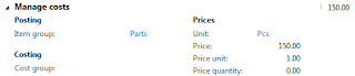 Please note that Standard cost items are not allowed on project production orders with Posting method = Consumed