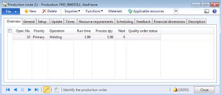 Solution: The simple but at the same time descriptive real-world example of discrete manufacturing of car frames provides context for better understanding of manufacturing processes and their implementation in Microsoft Dynamics AX. In particular we will be dealing with single level bill of materials and straightforward sequential route in order to implement Make to Stock scenario. Make to Stock scenario was implemented for the sake of simplicity, however we can also apply this knowledge to implement Make to Order scenario if needed.