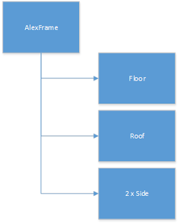 Car frame (AlexFrame) will have the following components: Floor, Roof and 2 Sides