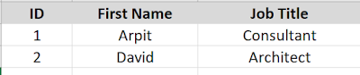 For Example- I have a "Customer" Table in my Database and It has three columns/fields named "ID", "First Name", "Job Title" and has two records as shown below: