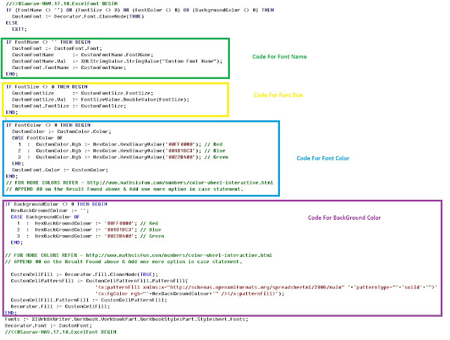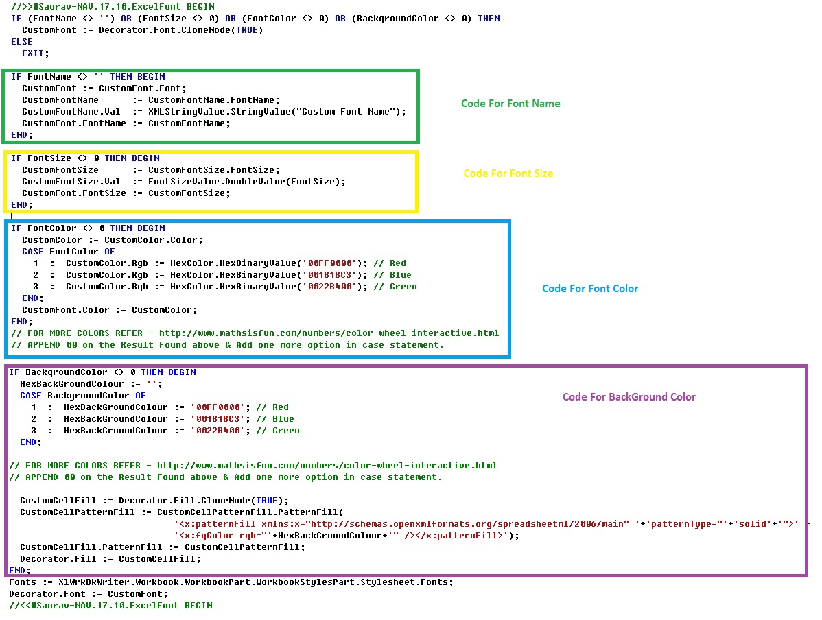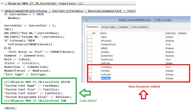 1. Add Four Fields Custom Font Name,Custom Font Size,Custom Font Color & Custom Background Color in Excel Buffer Table as shown below.