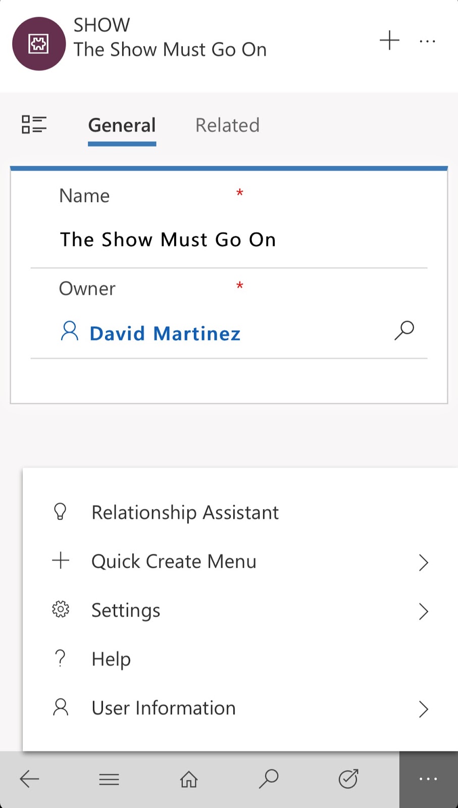 And from the mobile Dynamics 365 for phones application: