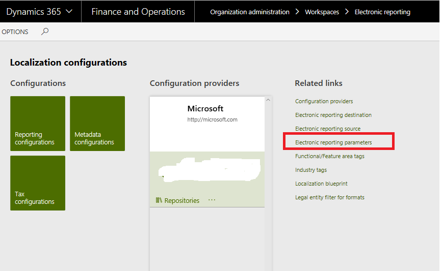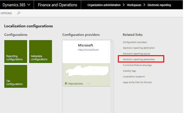 Then click on "Electronic reporting parameters" (I'm using 8.0 version with PL 22)