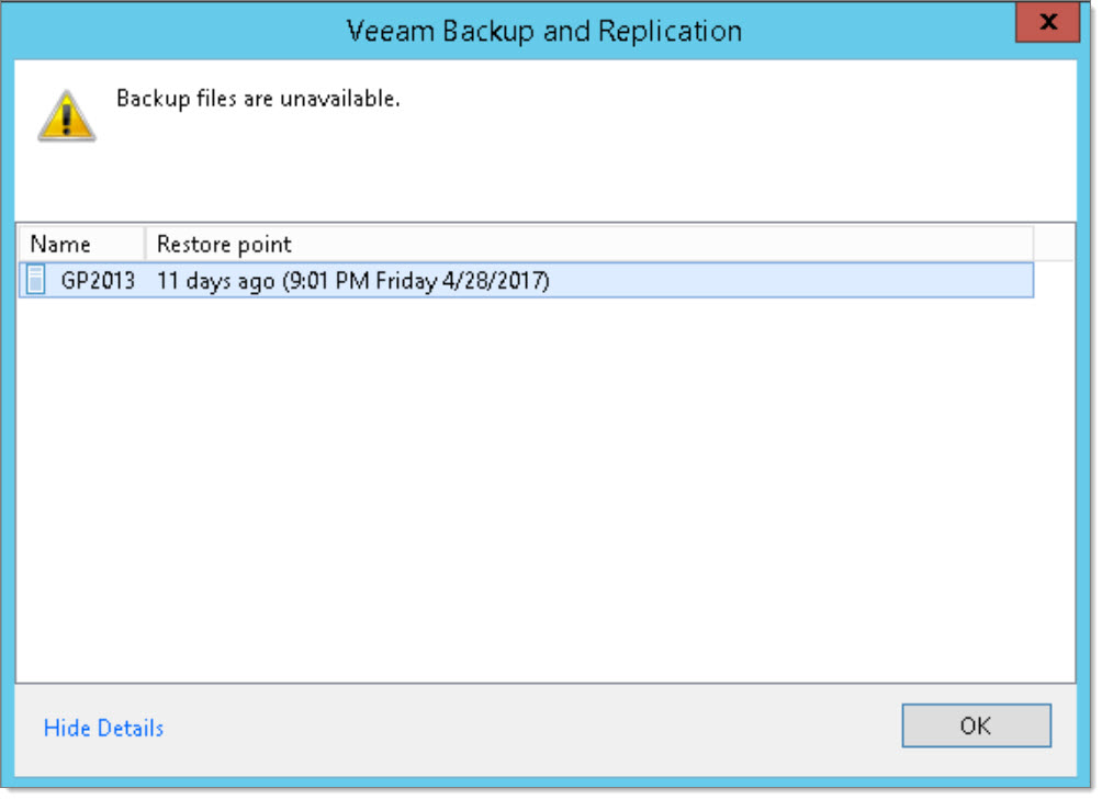 Veeam Error: Backup files are unavailable