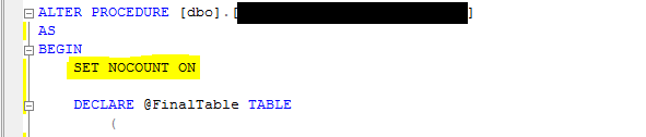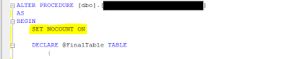 The reason for why we ought to set NOCOUNT ON is given in the same post by Devarajan KM. The reason is: Set NOCOUNT to ON so that you get only one result set arrived after execution.