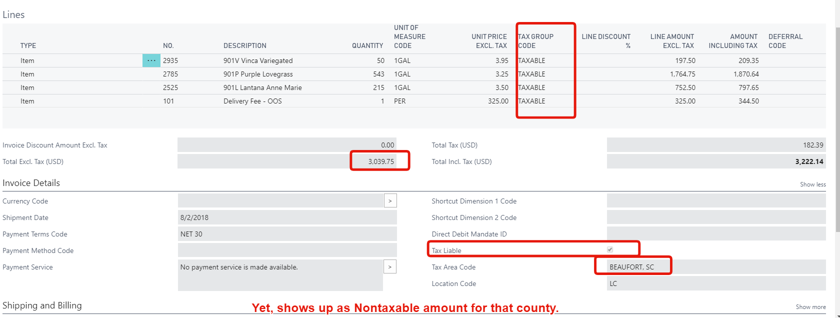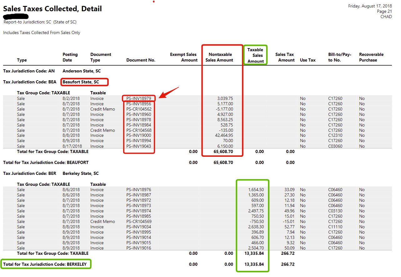 I noticed this only on the counties like Beaufort, SC that don't have a surcharge rate (county rate) on top of the state rate....It then reports the entire amount as Non-Taxable which is very confusing.