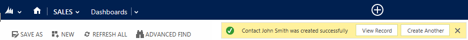 Hi, by default CRM prompts a user after using Quick Create (see below). Can this prompt be customized, or even be changed to an alert instead?